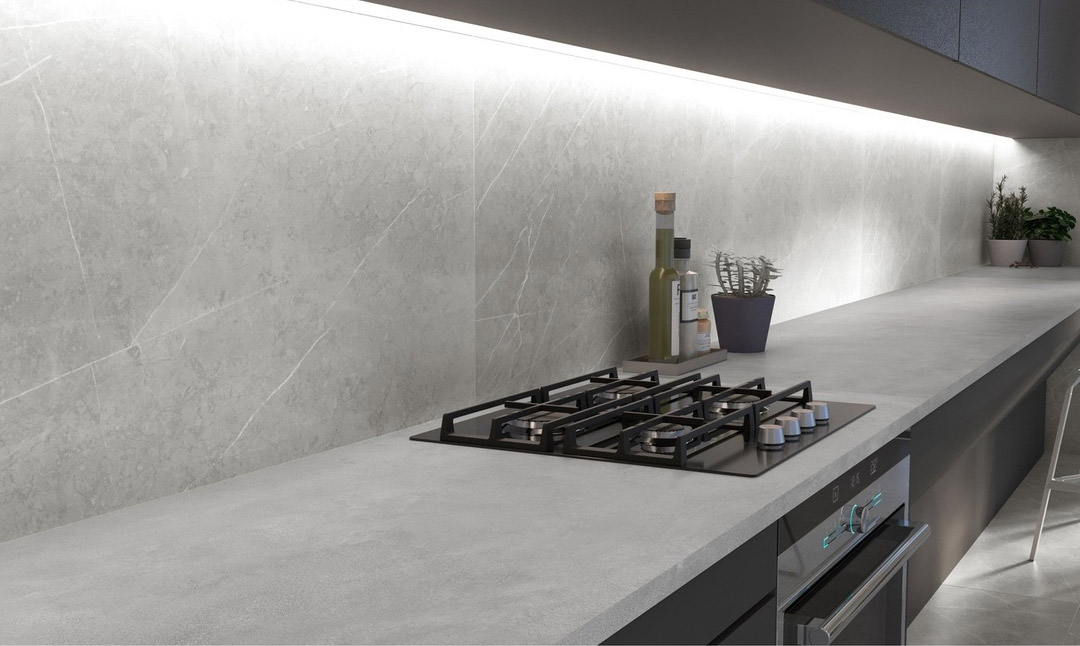 Керамогранит фартук — это облицовка стены над рабочей поверхностью на кухне, выполненная из керамогранита. Такой материал идеально подходит для этой зоны, так как он устойчив к воздействию влаги, высоких температур, а также к механическим повреждениям. В отличие от традиционной плитки, керамогранит имеет минимальное водопоглощение, что предотвращает появление плесени и грибка в местах стыков.